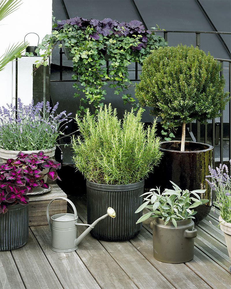 Förvandla balkong och uteplats till din egen lilla örtagård. Här får vackra växter också plats.